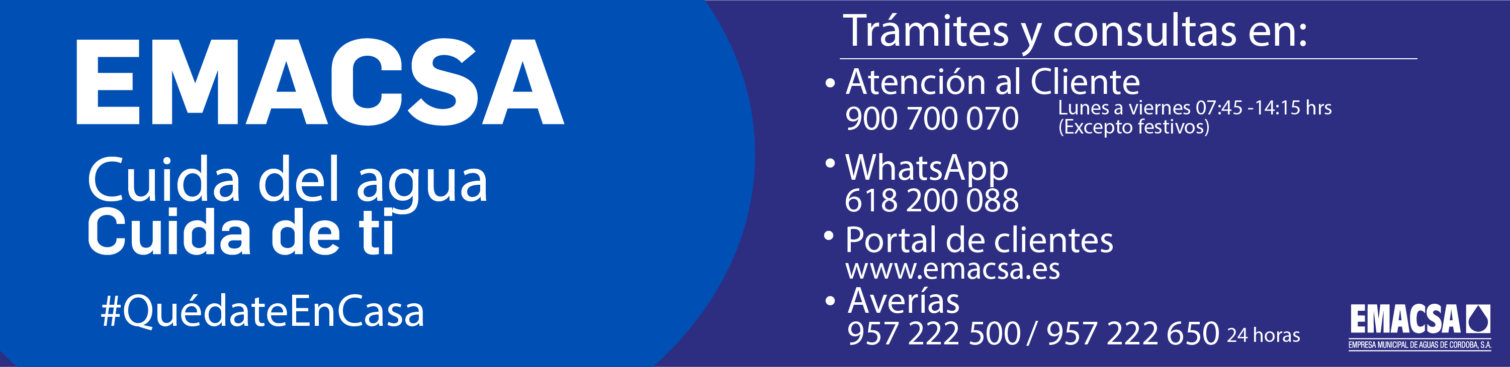 Córdoba mantiene fiel su tradicional dedicación hacia el agua gracias a la Empresa Municipal de Aguas, EMACSA, responsable de su explotación y tratamiento. EMACSA, al servicio de Córdoba.