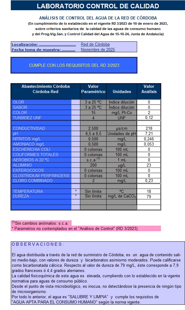 Análisis de aguas depuradas en EDAR Santa Cruz – Noviembre 2025