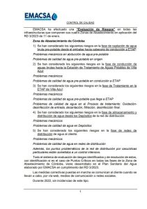 En cumplimiento a lo previsto en el Anexo XI, parte B.1. del REAL DECRETO 3/2023, DE 10 DE ENERO, POR EL QUE SE ESTABLECEN LOS CRITERIOS TÉCNICO – SANITARIOS DE LA CALIDAD DEL AGUA DE CONSUMO, SU CONTROL Y SUMINISTRO. Esta información debe publicarse con carácter anual en los 20 primeros días del año (respecto a los datos del año anterior).