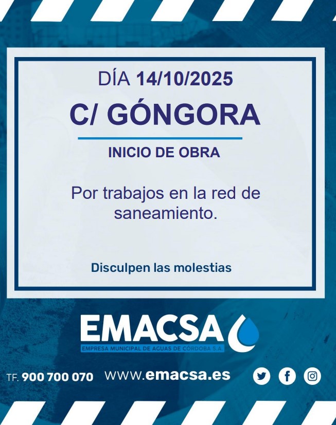 Día 14/10. C/ GÓNGORA. Inicio de obra por trabajos en la red de saneamiento.