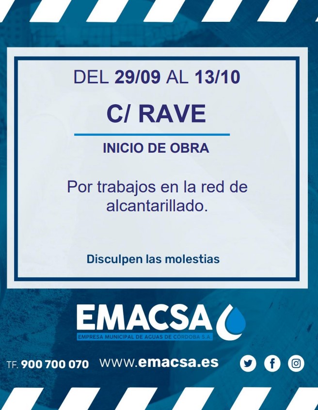 Del 29/09 al 13/10. C/ RAVE. Inicio de obra por trabajos en la red de saneamiento.