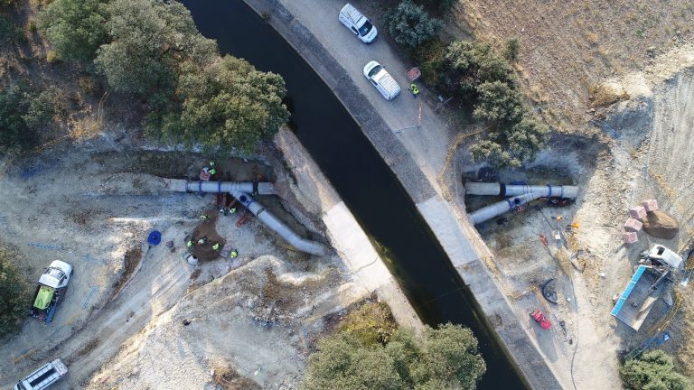 La segunda fase, que es la que finaliza ahora, ha supuesto la conexión de esta tubería alternativa a la segunda conducción. Estos trabajos se han desarrollado con el canal de riegos en funcionamiento para abastecer a la ciudad, dejando fuera de servicio la conducción original averiada, y conectándola a la tubería instalada en la primera fase.